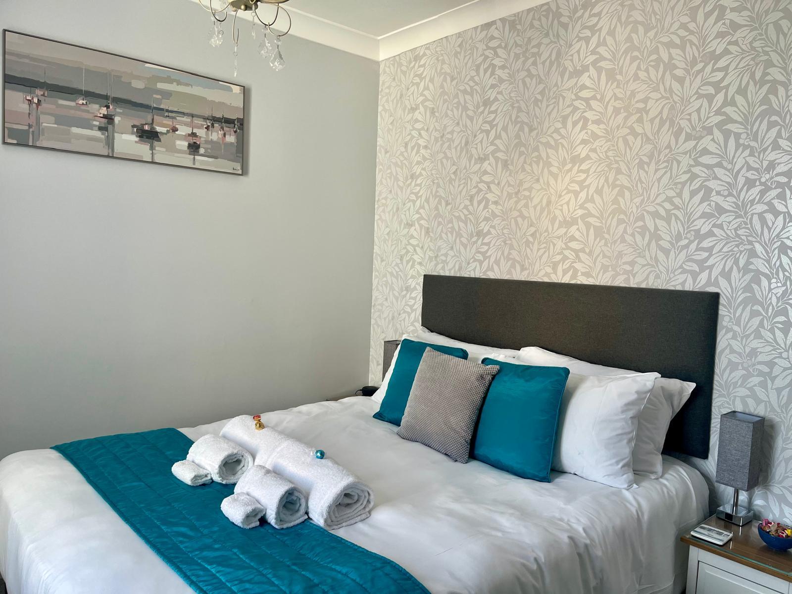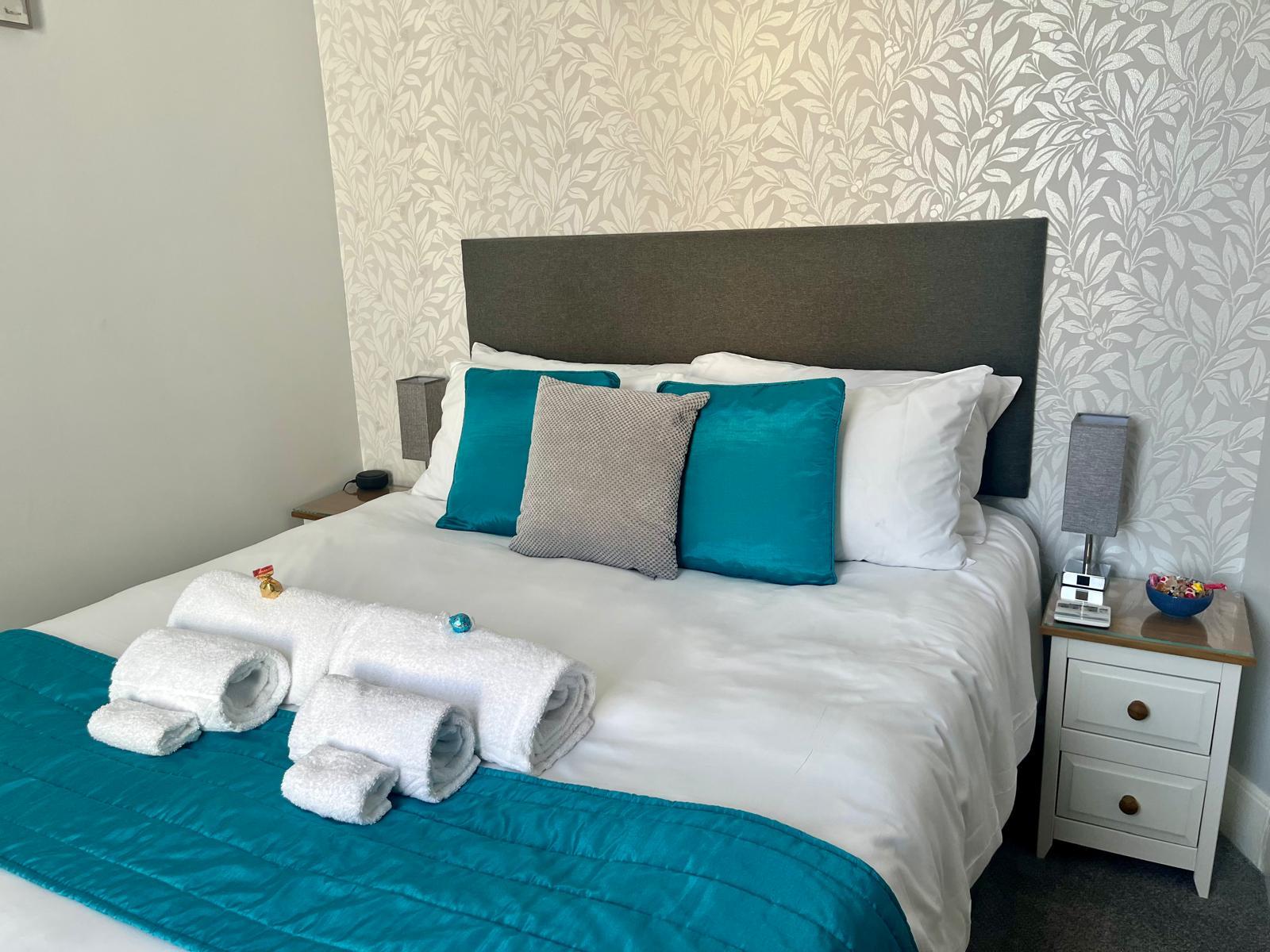 Room 2 is a charming boutique room with a fresh feature wall and a modern en-suite shower room. It has aking size bed along with a smart TV with Netflix, Amazon Echo Dot (Alexa), hairdryer, 24L silent fridge, iron and ironing board and complementary hospitality tray.